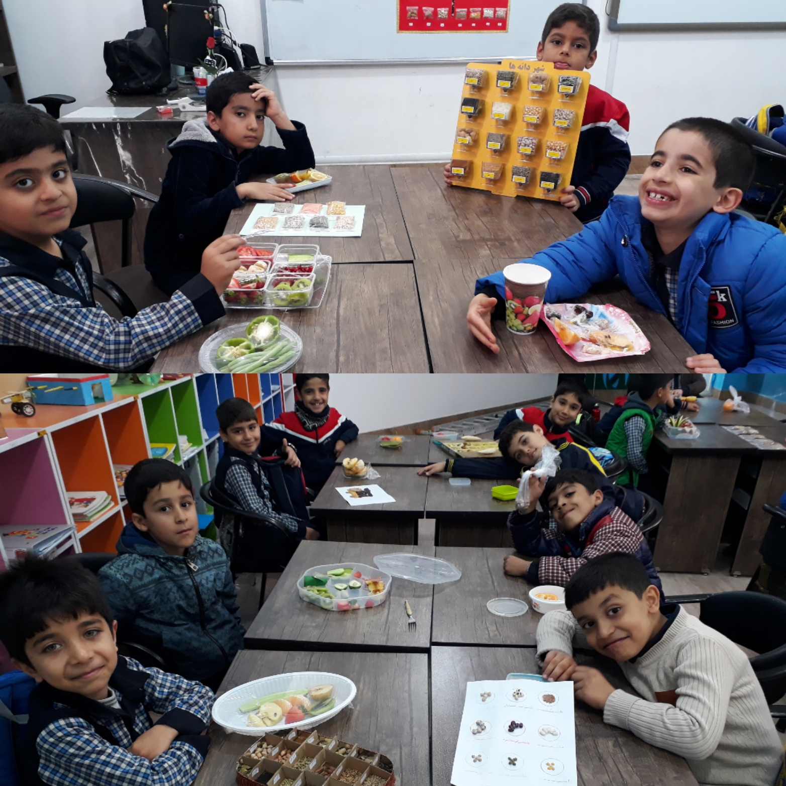 زنگ چهارم : علوم درس سرگذشت دانه ها در کتاب صفحه اول کار شد و به پرسش های متن پاسخ داده شد.